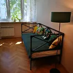 Along with coffee and tea making equipment, self-catering facilities in a fully furnished kitchen include a fridge, an oven, and glassware. Wroclaw-Copernicus airport is at a 20-minute driving distance, and Stalowa bus stop is at a distance of 150 metres from the 45 m^2 apartment.